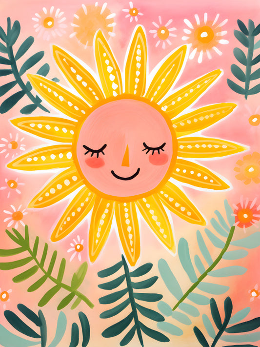 Kids - Sun with sunrays folk art